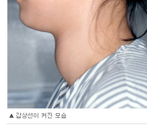 갑상선 기능 저하증 증상으로, 쉰 목소리가 나거나 갑상선에서 덩어리가 만져지는 경우도 발생할 수 있다고 합니다.